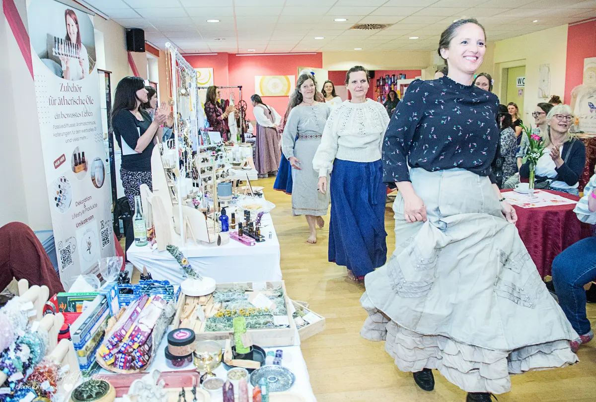 An den Verkaufsständen findest du eine vielfältige Auswahl an liebevoll ausgewählten Produkten für die spirituell interessierte Frau, darunter Natur- und Kräuterprodukte, Räucherwerk, Naturkosmetik, Tücher, Nähutensilien, Kakao, Bücher, Dekoartikel, Kartensets und vieles mehr. Besonderen Schmuck aus dem Erzgebirge präsentiert in diesem Jahr unserer weiterer besonderer Gast Sabrina Herzkristall.